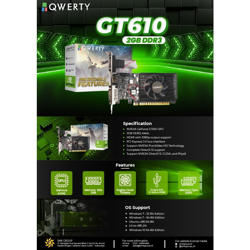 [Mall] VGA GEFORCE QWERTY GT 610 2GB DDR3 64BIT NVIDIA GARANSI 1 TAHUN
