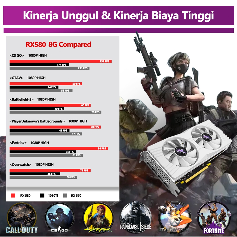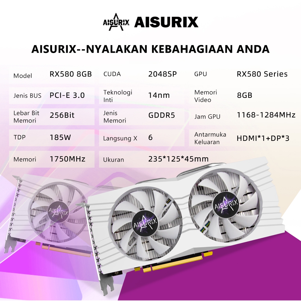[Mall] AISURIX RX580 8GB Batu ruby VGA card GDDR5 HDMI 256BIT 2048SP RX580 VGA