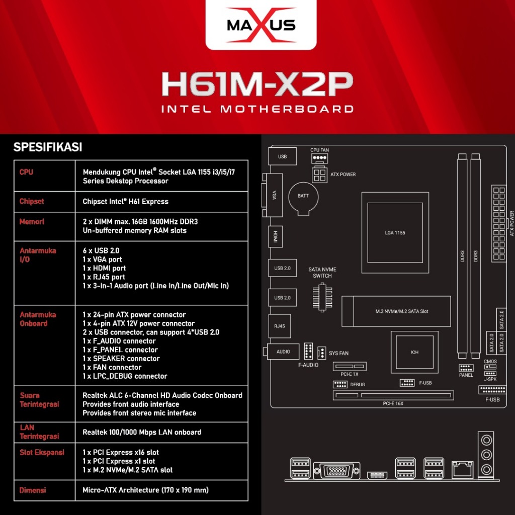 [Mall] Motherboard MAXUS H61 LGA 1155 DDR3 H61 Mainboard Support Nvme