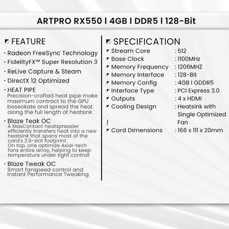 [Mall] VGA VURRION RX 550 4GB GDDR5 128 BIT 4 HDMI AMD 4G RX550 4HDMI PORT