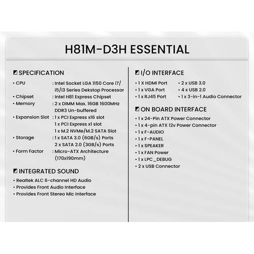 [Mall] MOTHERBOARD VURRION ESSENTIAL H81M-D3H Intel H81 LGA 1150 DDR3