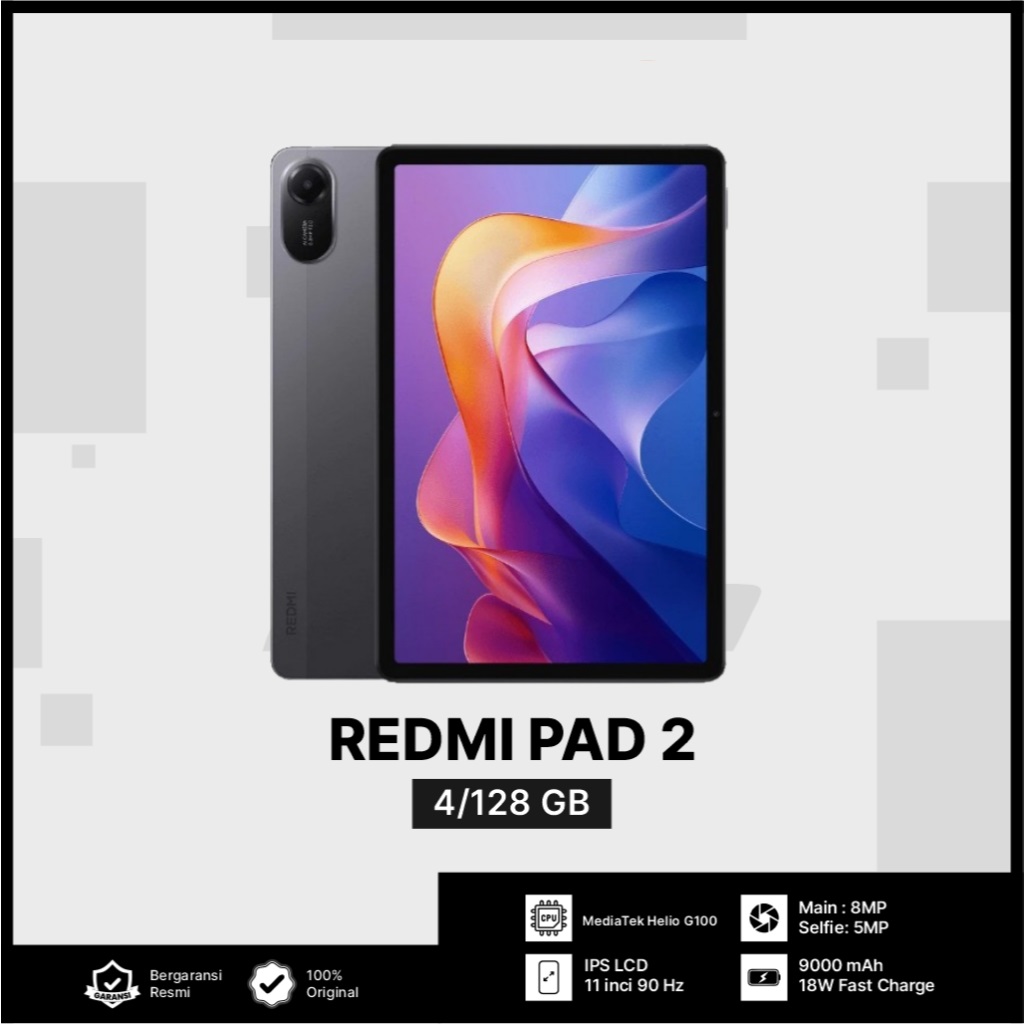 Xiaomi Redmi Pad 2 4GB/128GB Helio G100 - Ultra Layar 11" FHD+ 9000mAh - Garansi Resmi