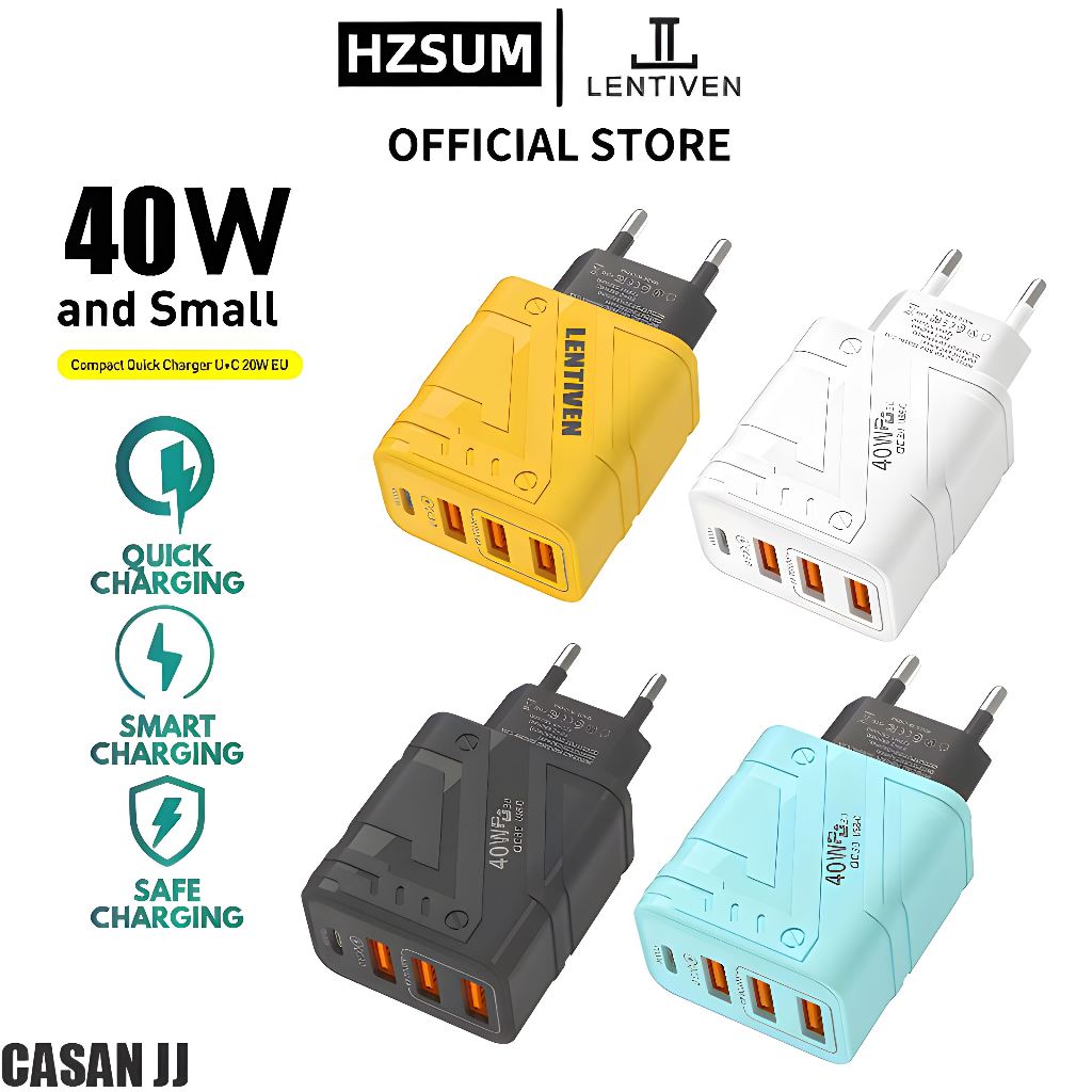 HZSUM LENTIVEN Adaptor Charger fast charging USB Type C Kepala Charger 40W