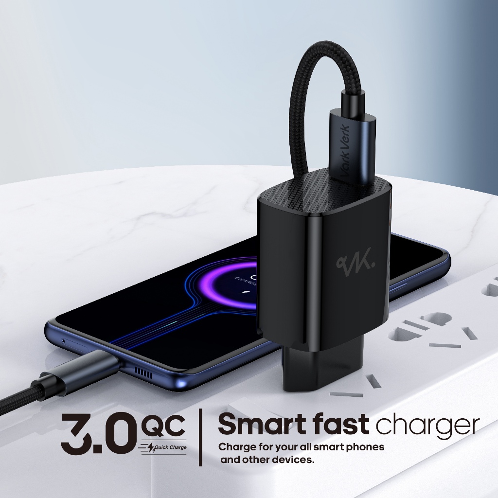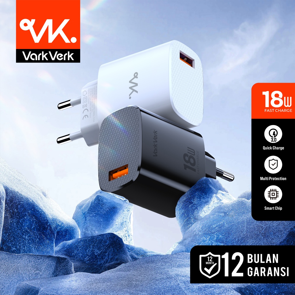 VarkVerk TC-03 PENGISI DAYA CEPAT QC3.0 USB 3A 18W MAKSIMAL QC3.0 USB 3A FAST TRAVEL CHARGER 18W MAX