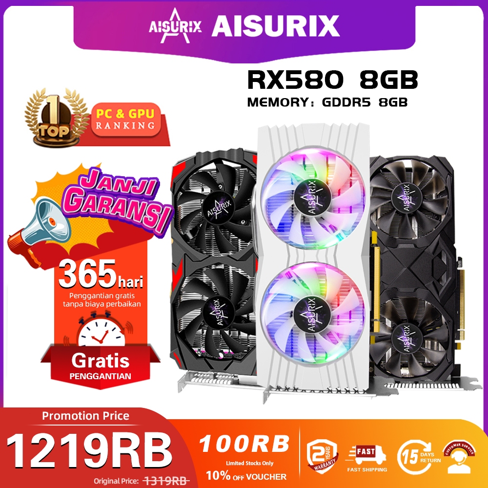[Mall] AISURIX RGB Glowing Graphics Card RX 580 8GB DDR5 256Bit 2048SP Versi E-Sports - Gaming VGA Card