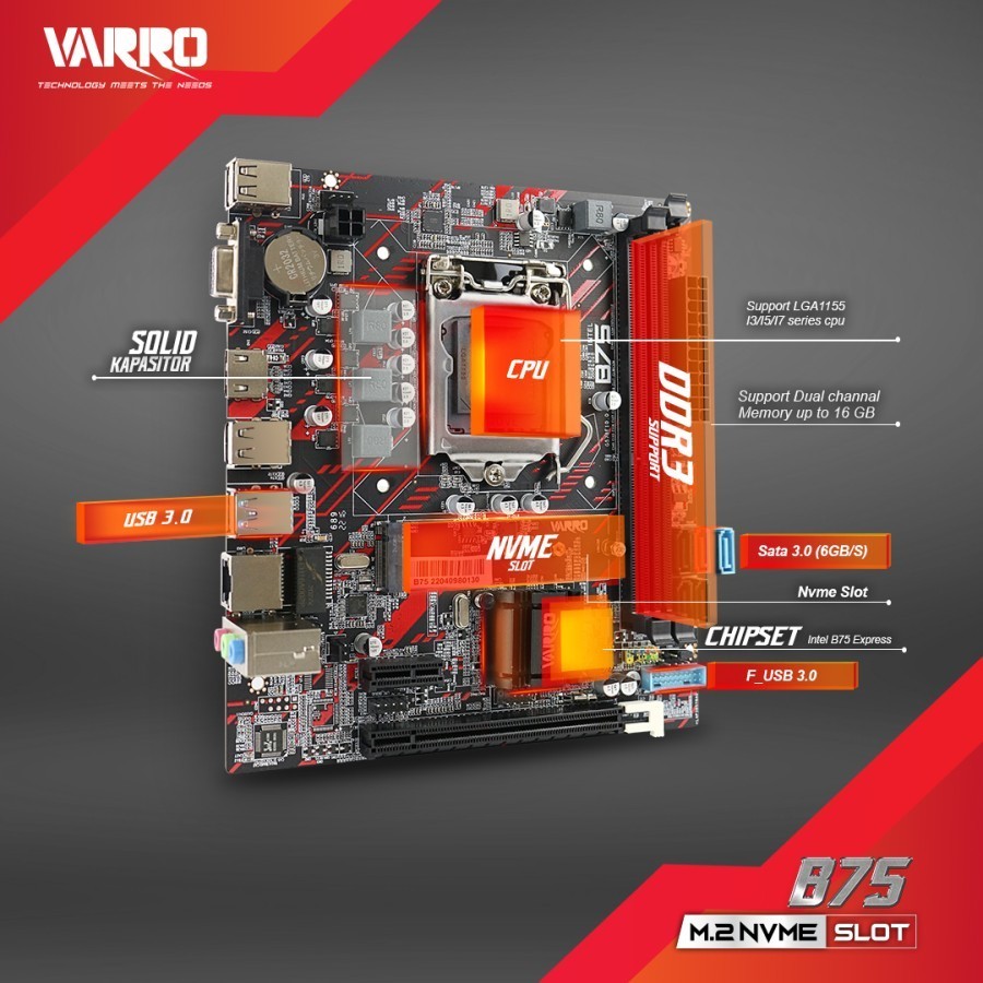 [Mall] MOTHERBOARD VARRO H61 PLUS / B75 (USB 3.0) + NVME SOCKET Intel 1155