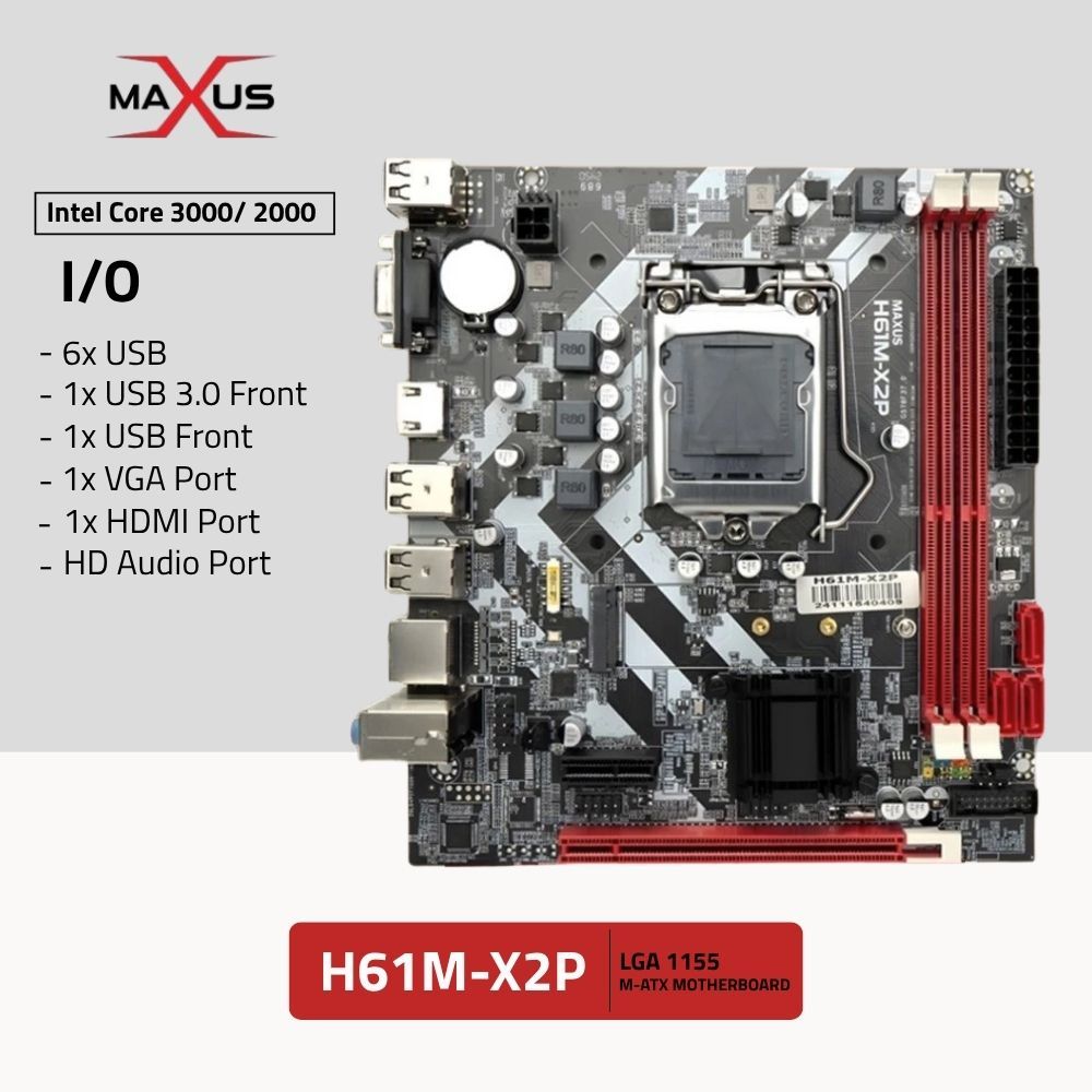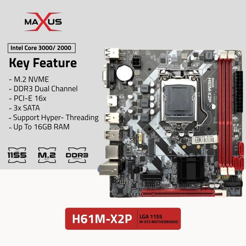 [Mall] Motherboard H61M X2P NVME DDR3 Intel Socket 1155 MATX Motherboard Maxus