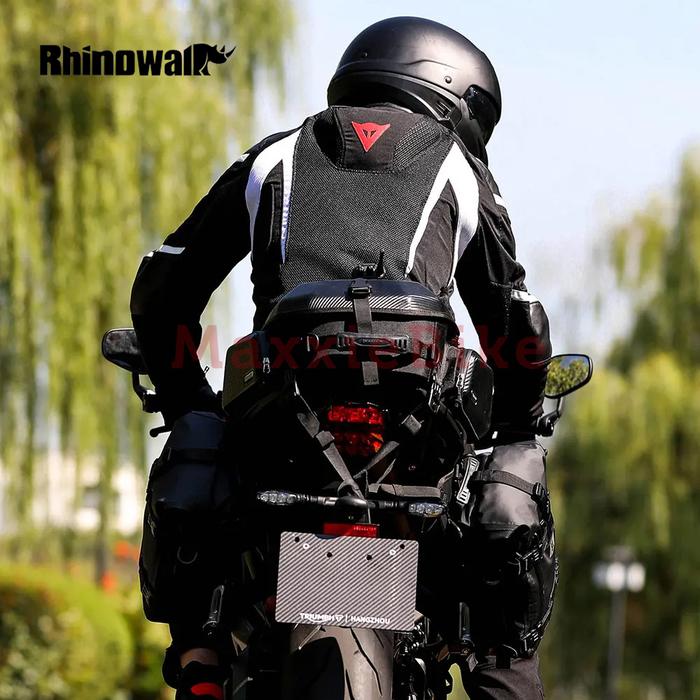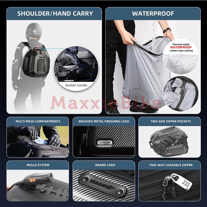 RHINOWALK MT2335 TAS SEPEDA MOTOR 23L-35L MOTORCYCLE HARD SHELL TAIL TRAVEL PANNIER BAG EXPANDABLE - MATTE BLACK