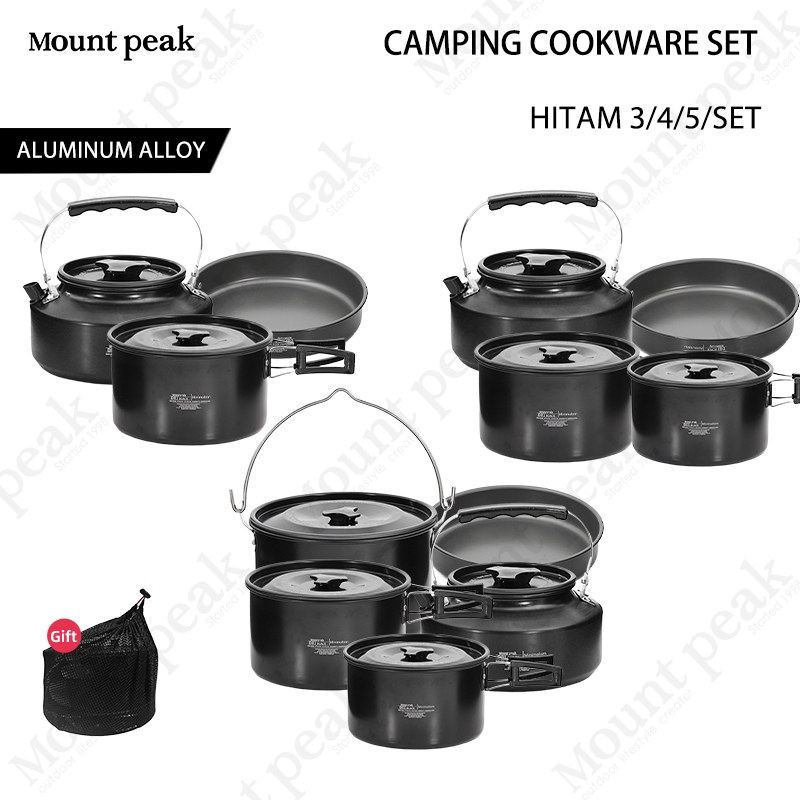 MOUNTPEAK COOKING SET PANCI CAMPING 3/4/5 PCS PORTABLE BAJA TAHAN KARAT DESAIN ERGONOMIS MUDAH DIBAWA OUTDOOR