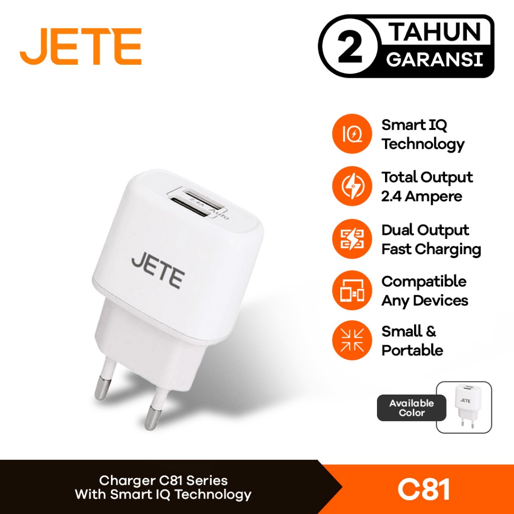 JETE C81 Charger PIKE Dual Output 2.4A Fast Charging - Garansi 2 Tahun