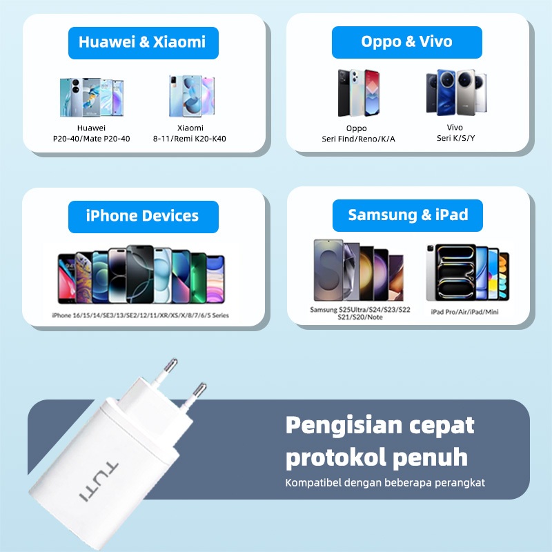 TUTI Kepala Charger Fast Charging 65W Usb A Type C Charger iPhone Kable Data Type C Fast Charger