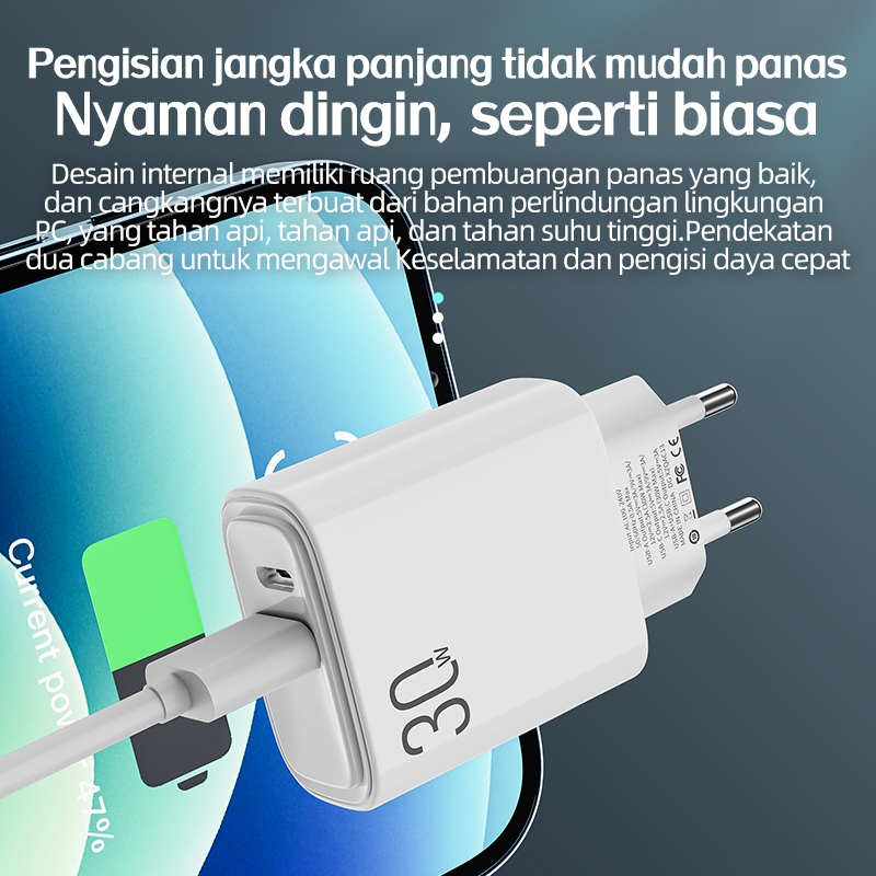 (HOT) KIVEE Charger Type C Fast Charging 30w KV-AC108 Adaptor Quick 4.0 for iphone Xiaomi Asli