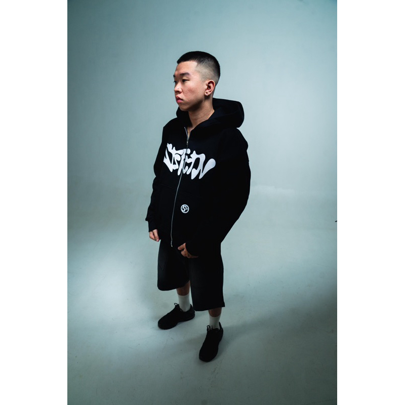 JAKET HOODIE PRIA WANITA SATISFACTION ZIPPER BOXY JACKET 375GSM STARSY PUFF BLACK