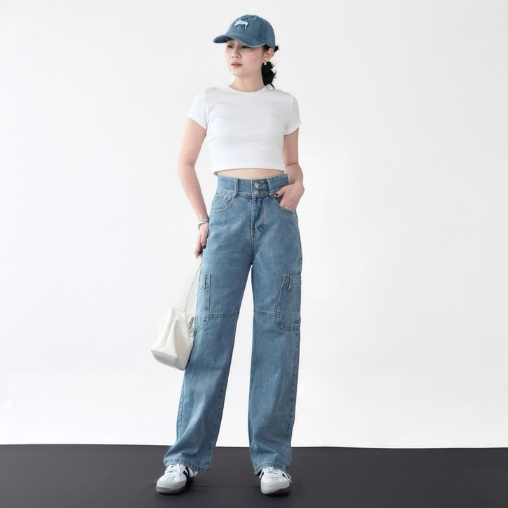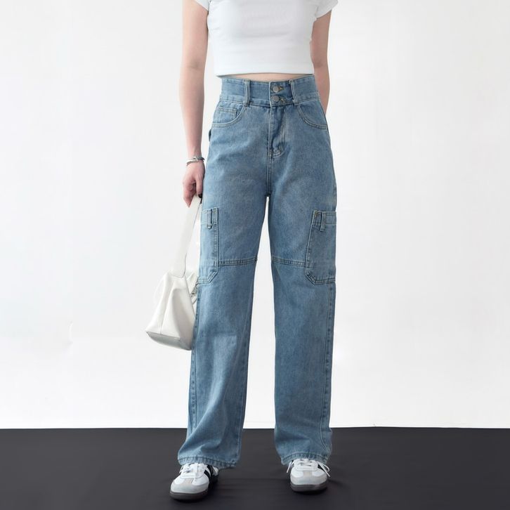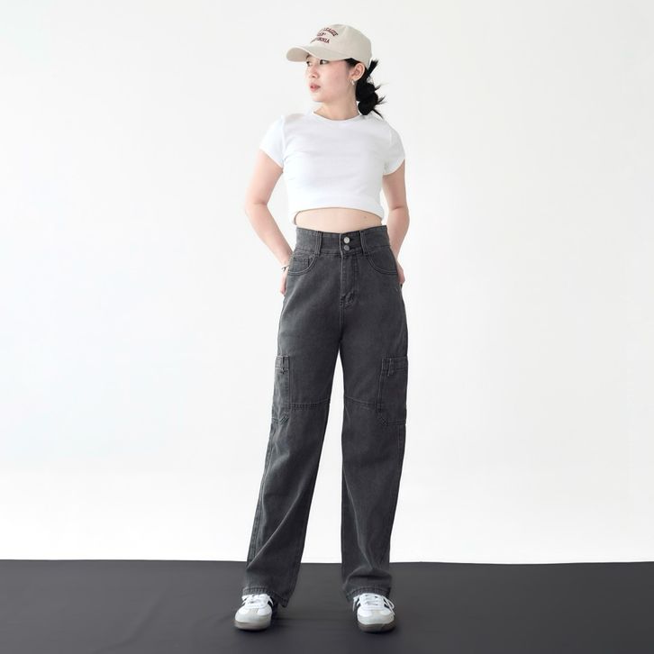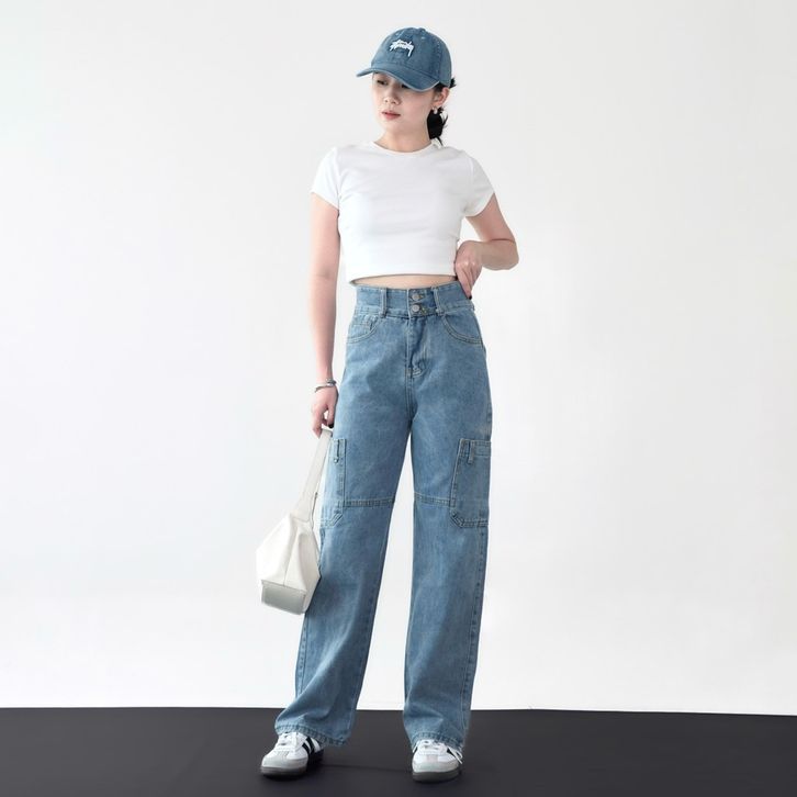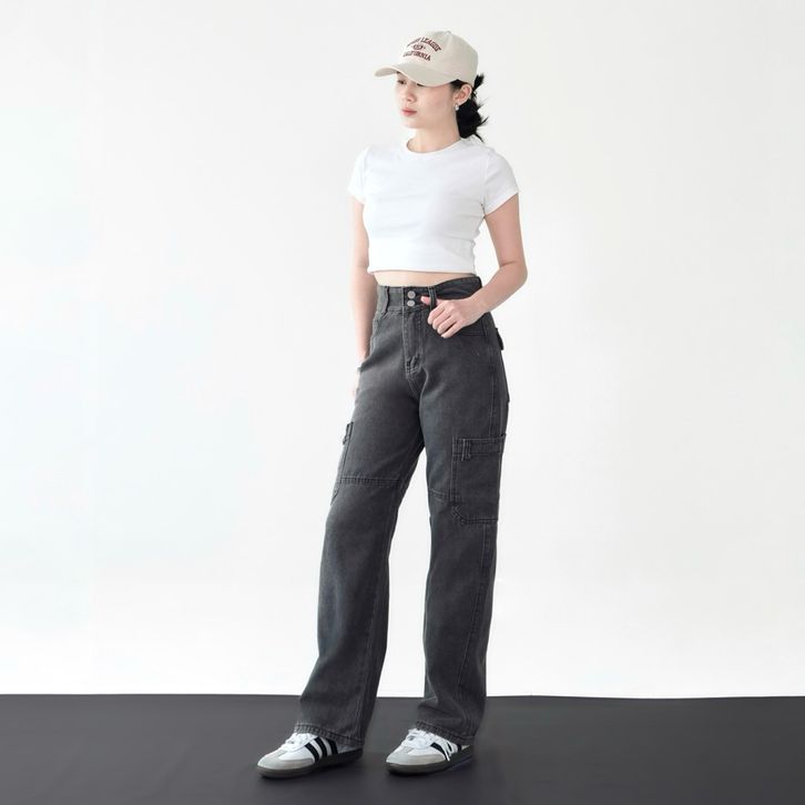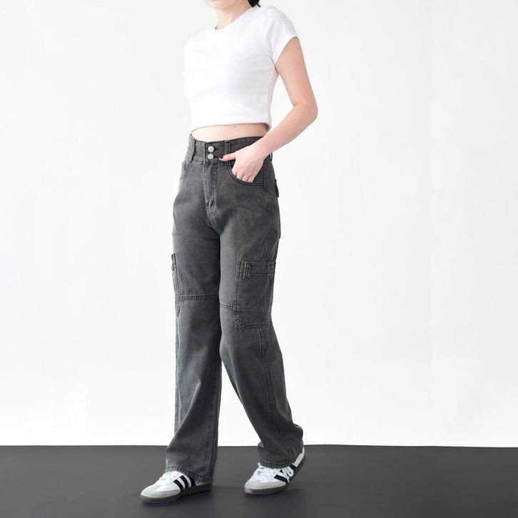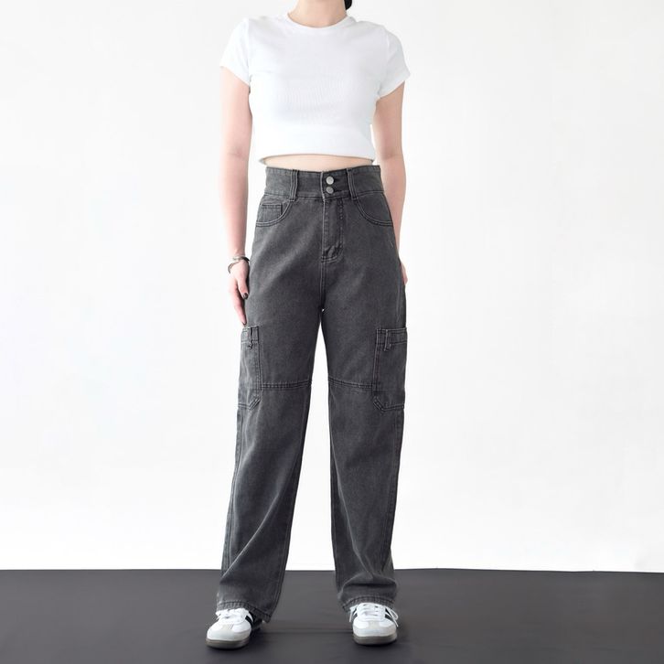 [BUTIKITA] Celana Jeans Wanita Cargo Highwaist Loose Wide Leg - Cargo Jeans Korea Style Premium