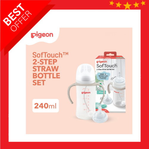 PROMO Botol Dot PIGEON BOTOL Softouch BPP WIDE NECK 240ml- SOFTOUCH STRAW ALL IN ONE SET - 2 STEP