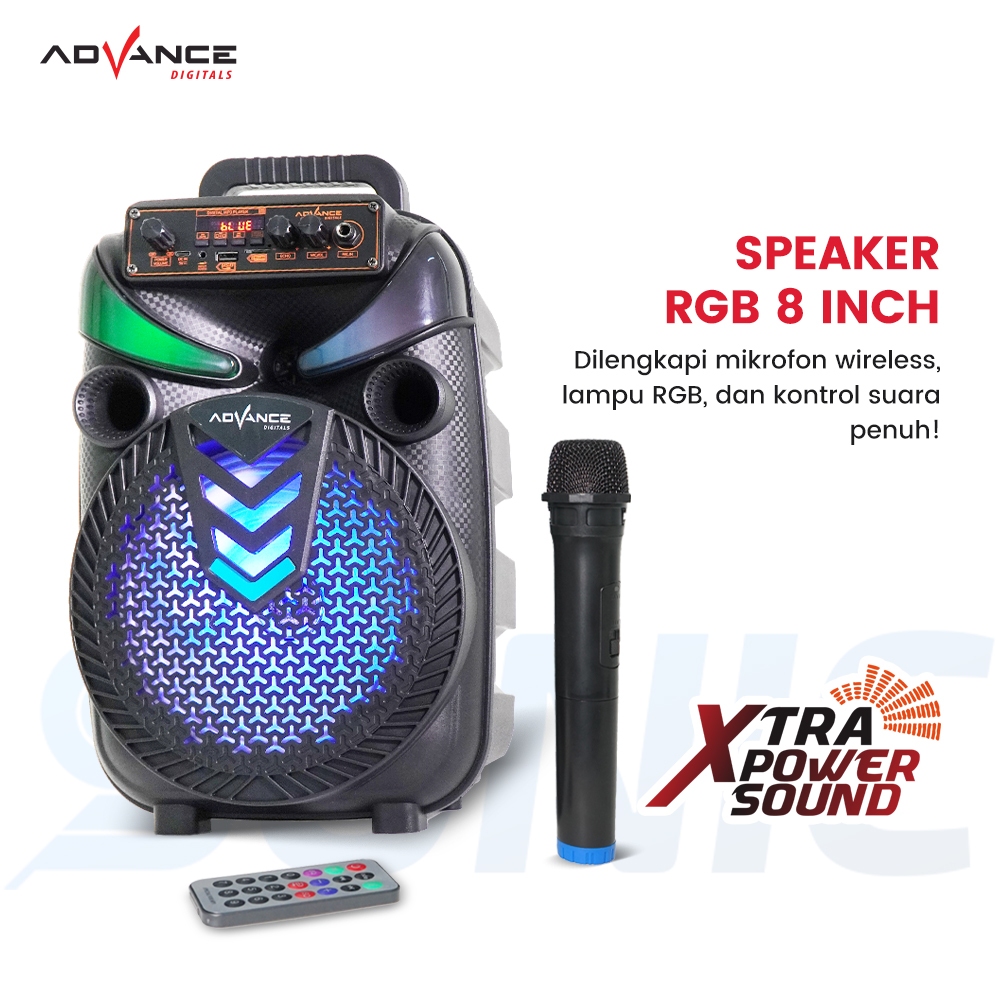 Advance S80 Speaker Bluetooth Karaoke 8 inch Free Mic Super Bass Speaker Aktif With Rgb Light