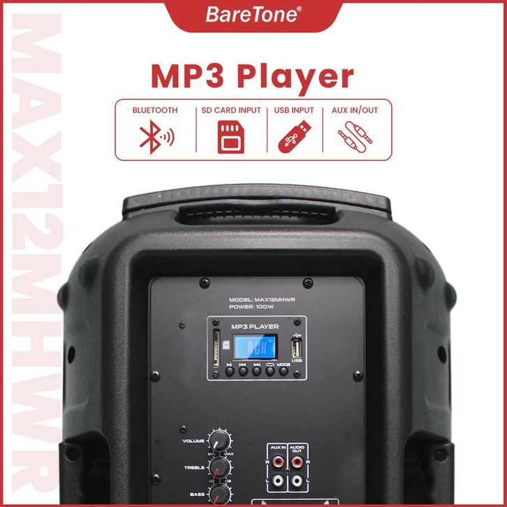 BareTone MAX12MHWR Speaker Aktif Portable 12 Inch Bluetooth