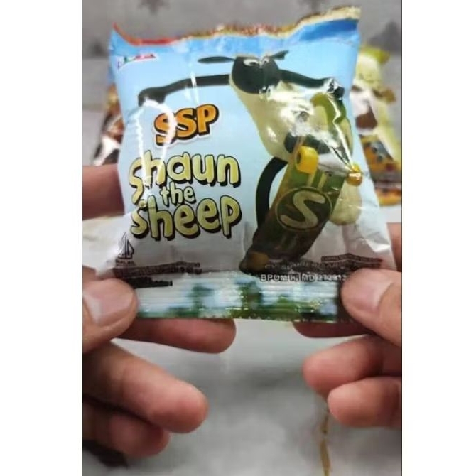 snack ciki viral berhadiah merk shaun the sheep
