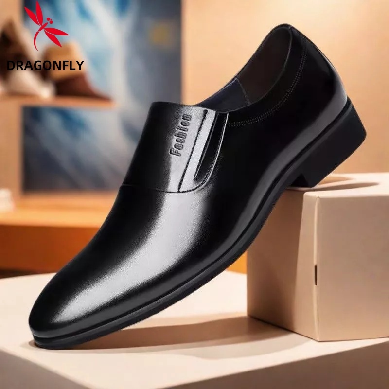 DRAGONFLY Sepatu Loafer Pria Formal Kantor Kulit Premium