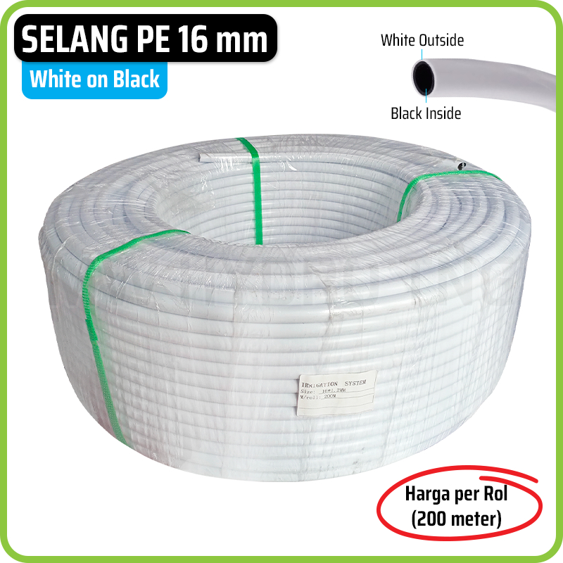 1 Rol (200 Meter) Selang PE 16 mm 2 Lapis Putih Hitam (White on Black) - Hidroponik, Fertigasi, Irigasi Tetes