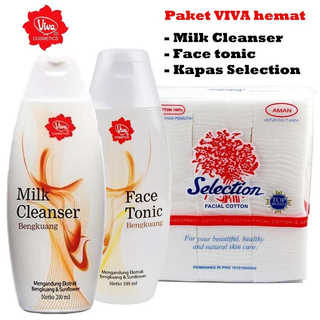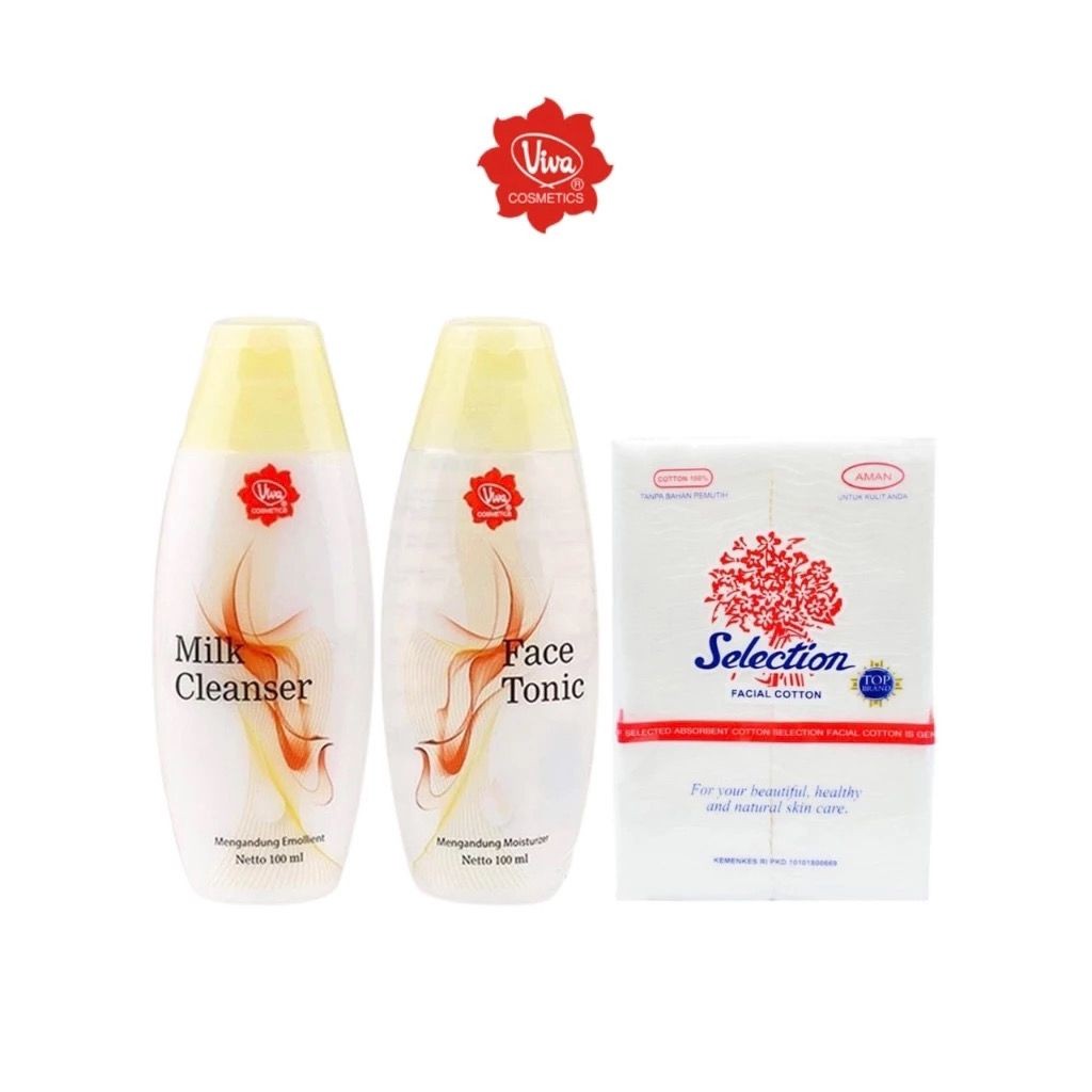 3IN1 PAKET HEMAT VIVA MILK CLEANSER 100 ML + FACE TONIC 100 ML + KAPAS SELECTION 35GR PEMBERSIH WAJAH Spirulina Bengkoang Lemon Greantea Cucumber