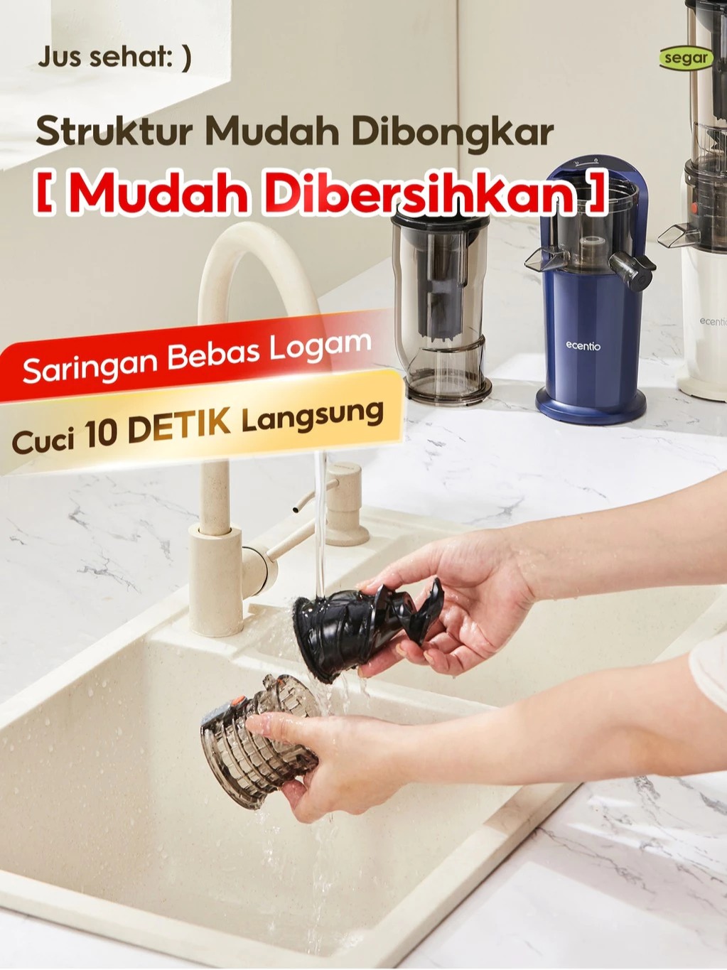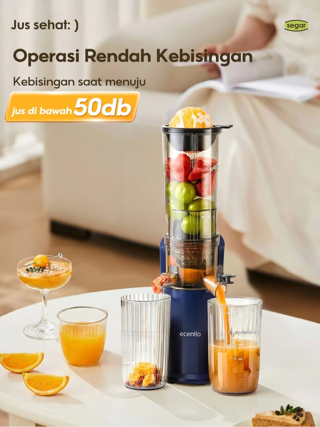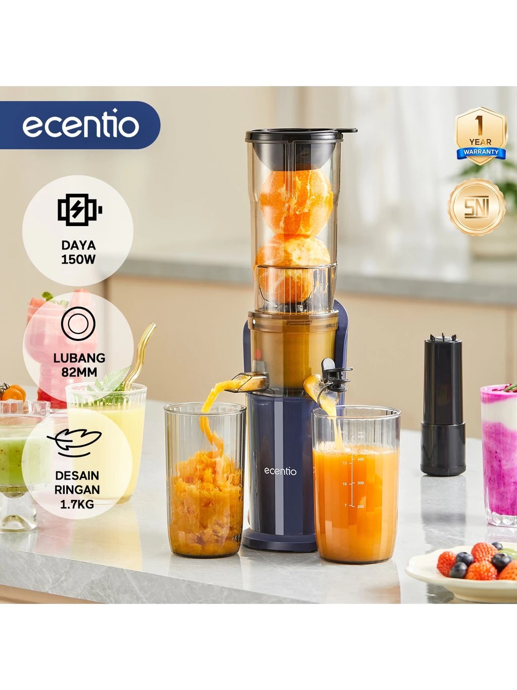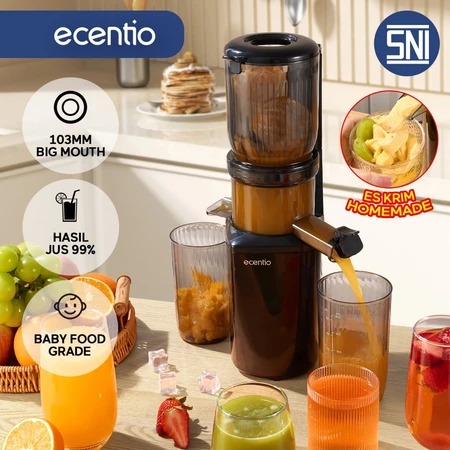 Blender - ecentio Slow Juicer Low Watt Extra Big Mouth 82mm Easy Juice Filter-Free Low Watt Easy Clean Tanpa Potong Buah