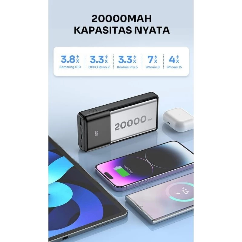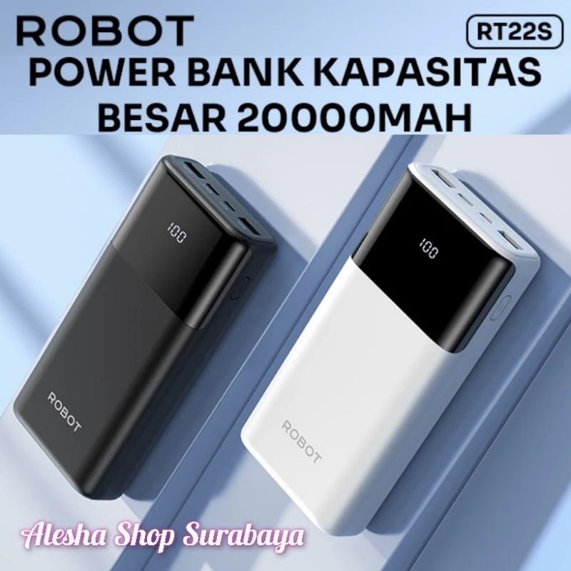 Powerbank ROBOT RT22S Powerbank 20.000mAh FAST PD15W Triple Output Dual USB-A & Type-C LED Indikator RT190S Best Seller