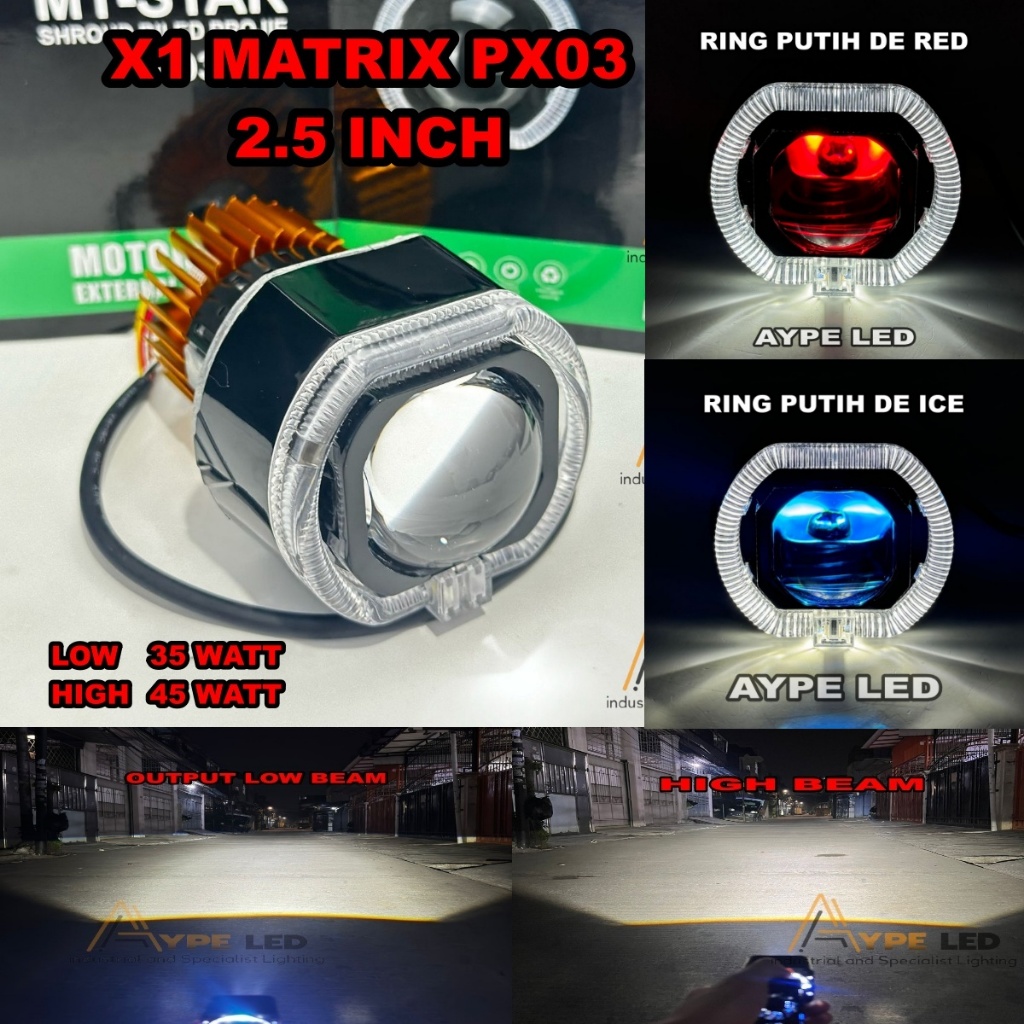 MT-STAR Biled Matrix X1 2.5 inch PX03 Black Series Ring Demon Eyes High lo Putih Pnp Motor Mobil