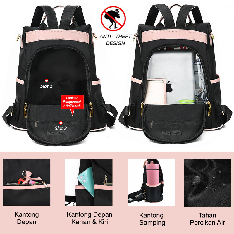 Peonia PNA CARLA Water Resistant Tas ransel wanita Import korea style Punggung Kantor Kerja Sekolah Kuliah Outdoor Trend