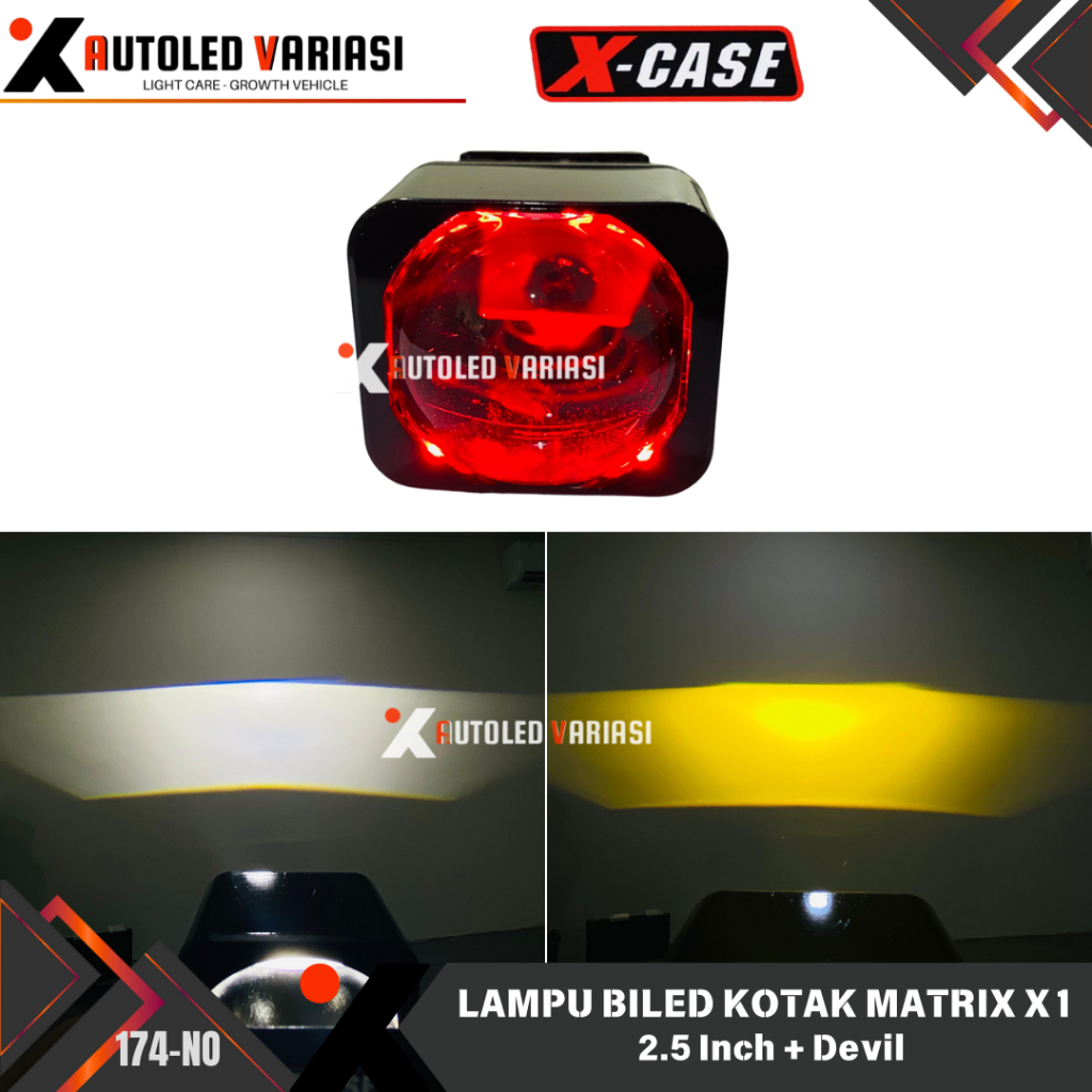 Biled Matrix X1 Projector Plus Devil 1,5 Inch Jauh Dekat Flat Cut Off Plus Kipas Pendingin Motor