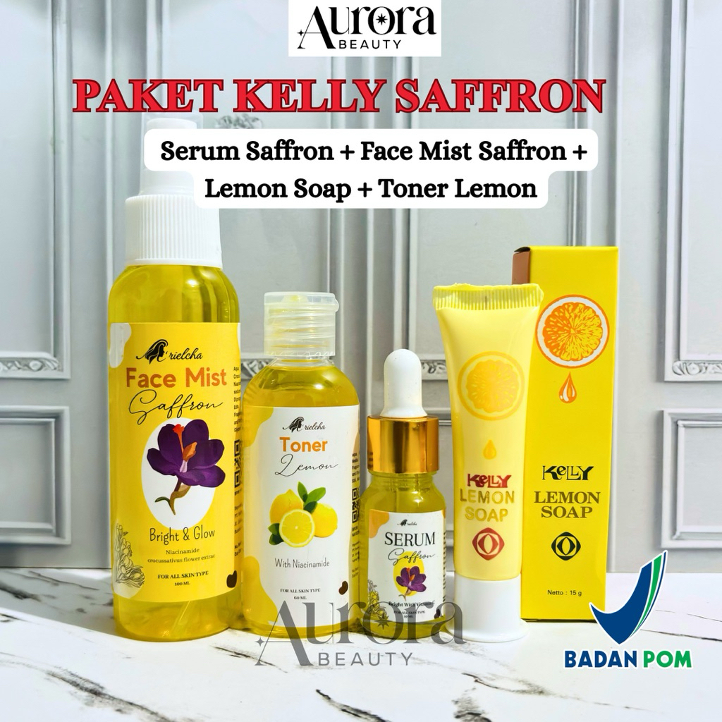 isi 4 Paket Glowing Kelly Lemon Soap 15gr + Serum Saffron + Toner Lemon + Face Mist Saffron Mencerahkan Wajah