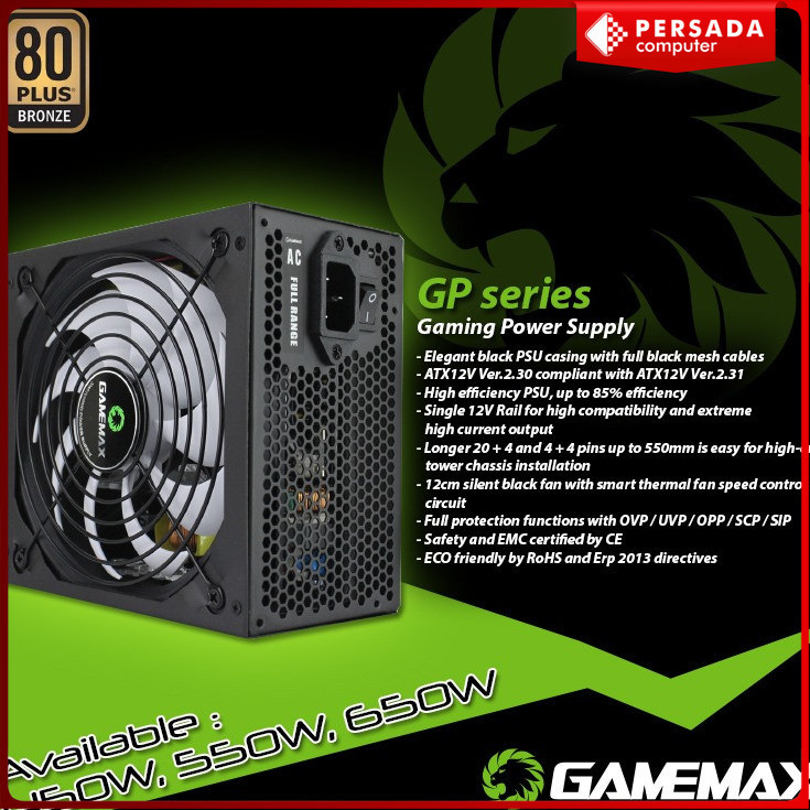 PSU GAMEMAX GP550 550Watt GP-550 - 80plus Bronze Certified GAMEMAX GP 550