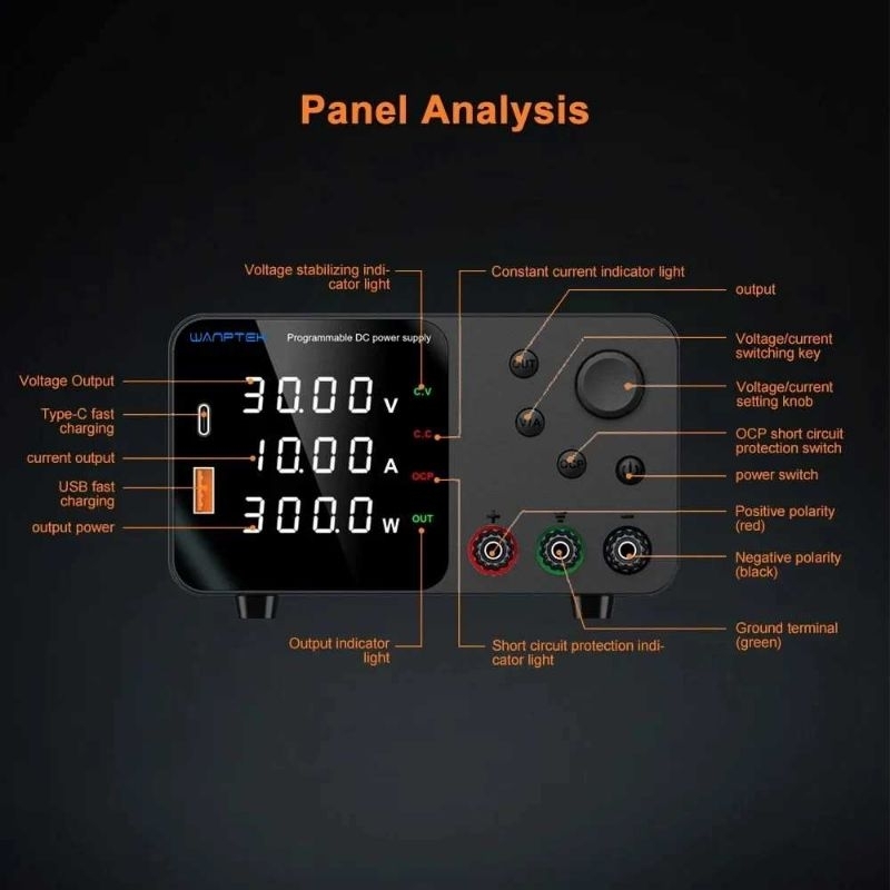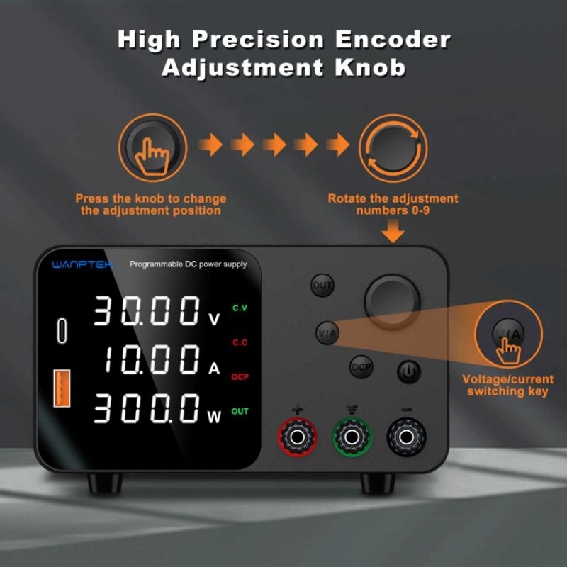 Power Supply DC 120V 60V 30V 10A 300W Adjustable Ammeter Stabilized - WANPTEK TPS Series