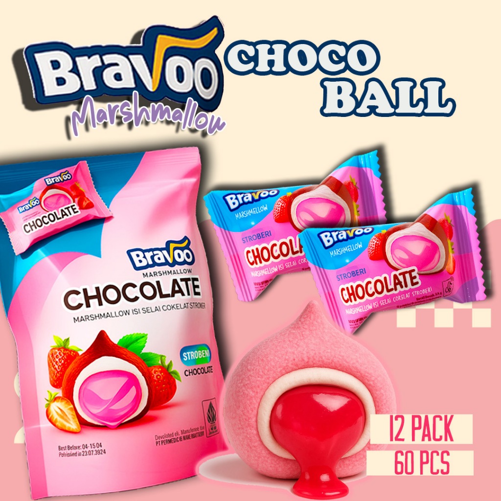 NEW! BRAVOO CHOCO BALL MARSHMELLOW 12 PACK ISI 60PCS HALAL BPOM MARSHMELLOW ISI SLAY STROBERRY DAN CHOKLAT PREMIUM JAJAN