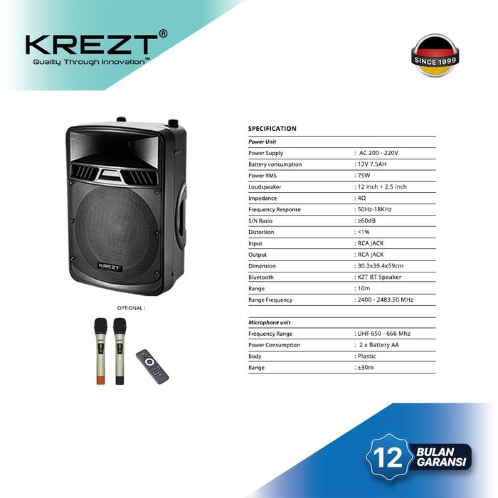 Speaker Portable KREZT WAS 8412N 12 Inch Original Bluetooth 2 Mic