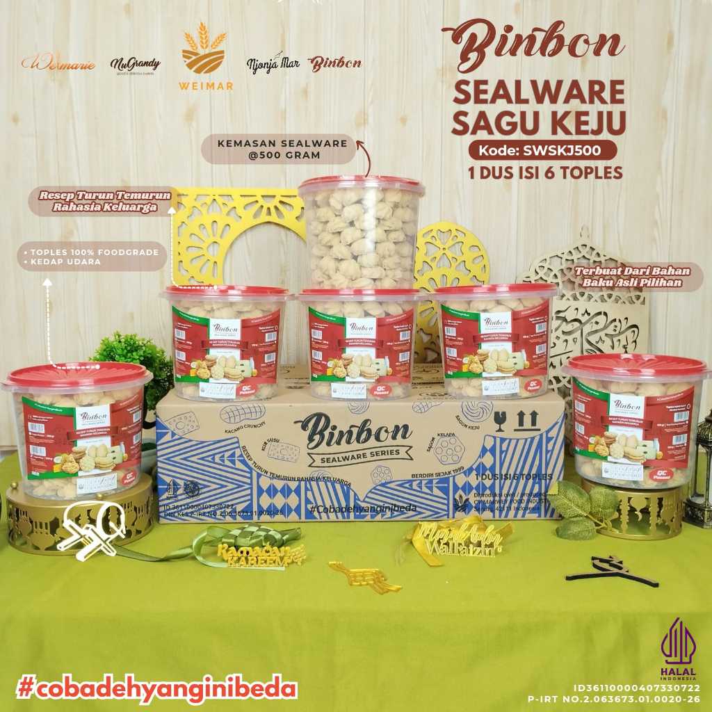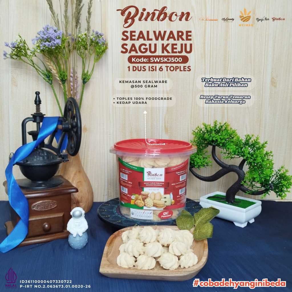Binbon Cookies Kue Sagu Keju @500 Gr / Toples Sagu Keju Jadul