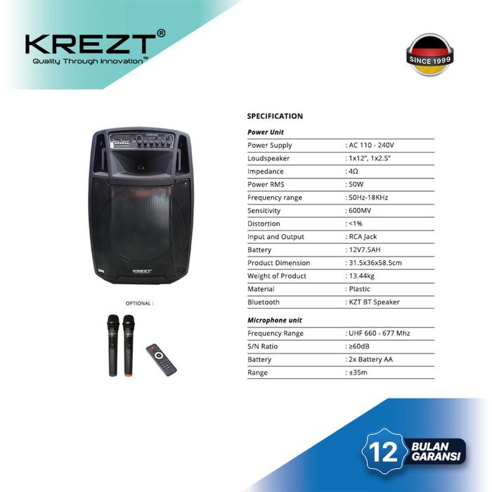 Speaker Portable KREZT WAS 112B WAS-112B 12 Inch Original 2 Mic Bluetooth