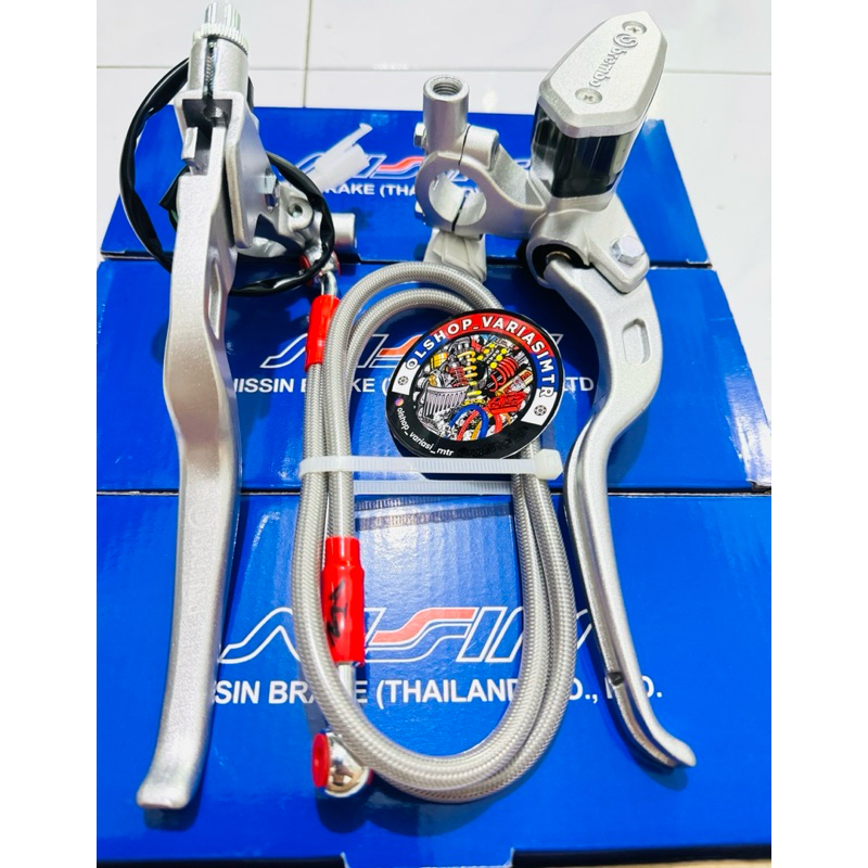 [Star] Paketan Full Silvet Master Rem Tabung Kotak Big Logo+Selang Rem Serat Silver 90-95Cm Semua Motor
