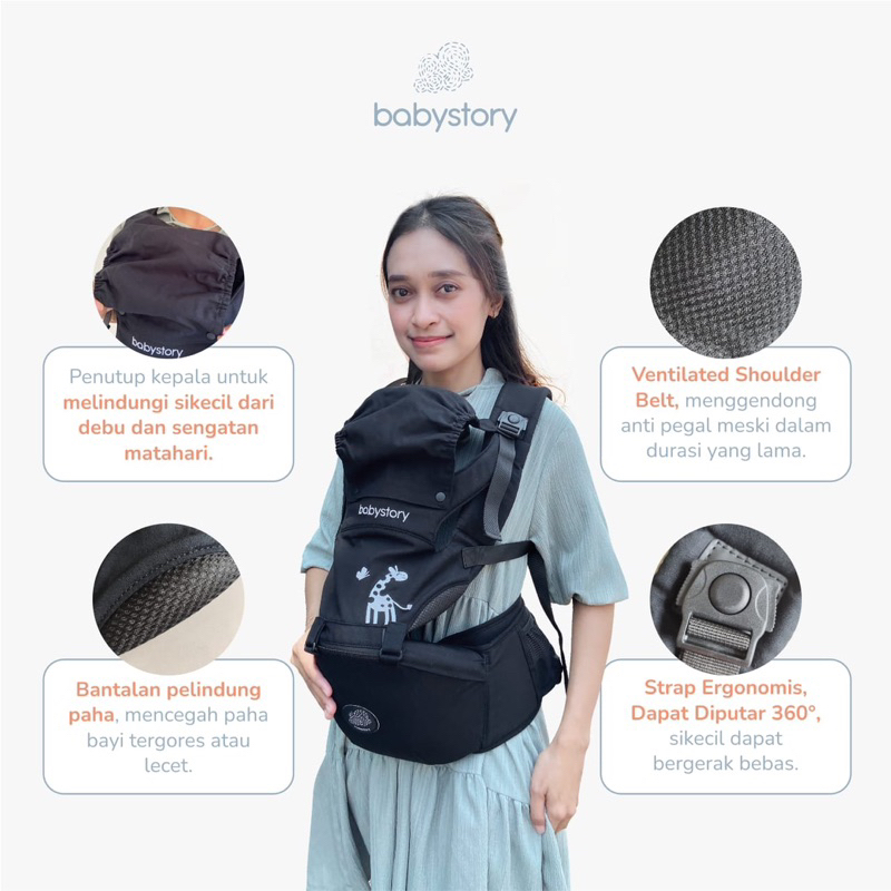 Hipseat premium gendongan bayi Babystory lightweight hipseat carrier Black colour