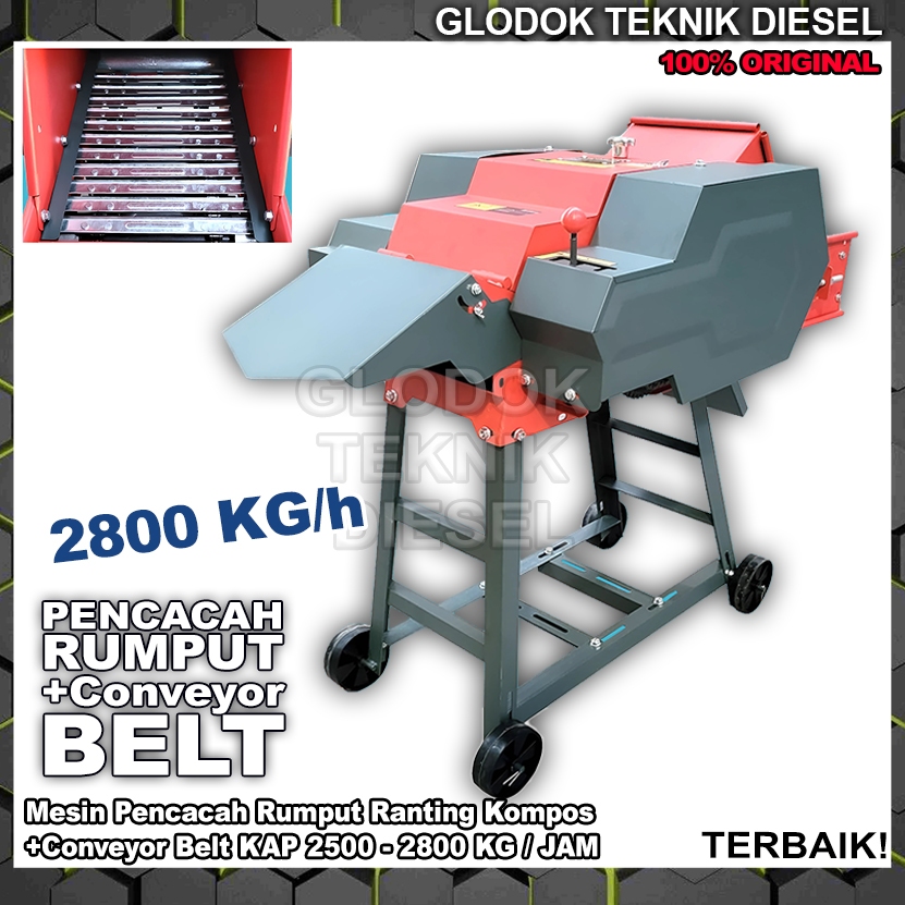 Mesin Pencacah Rumput 2800 KG/h + Conveyor Belt Cacah Rumput Ranting Kompos Chaff Cutter Machine Original Terbaik 2500-2