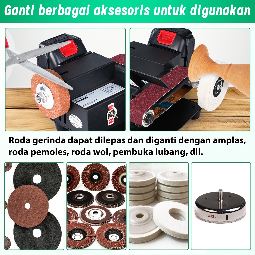 Victool 300W roda gerinda listrik sabuk 90° set sabuk vertikal ganda mesin roda gerinda yang dapat dilepas roda amplas p