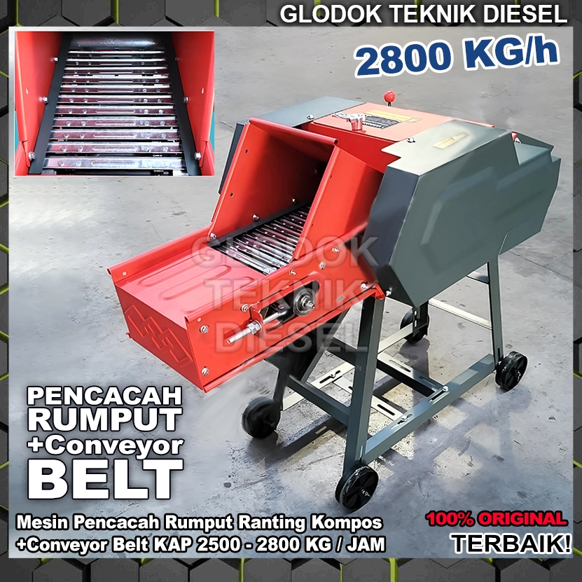 Mesin Pencacah Rumput 2800 KG/h + Conveyor Belt Cacah Rumput Ranting Kompos Chaff Cutter Machine Original Terbaik 2500-2