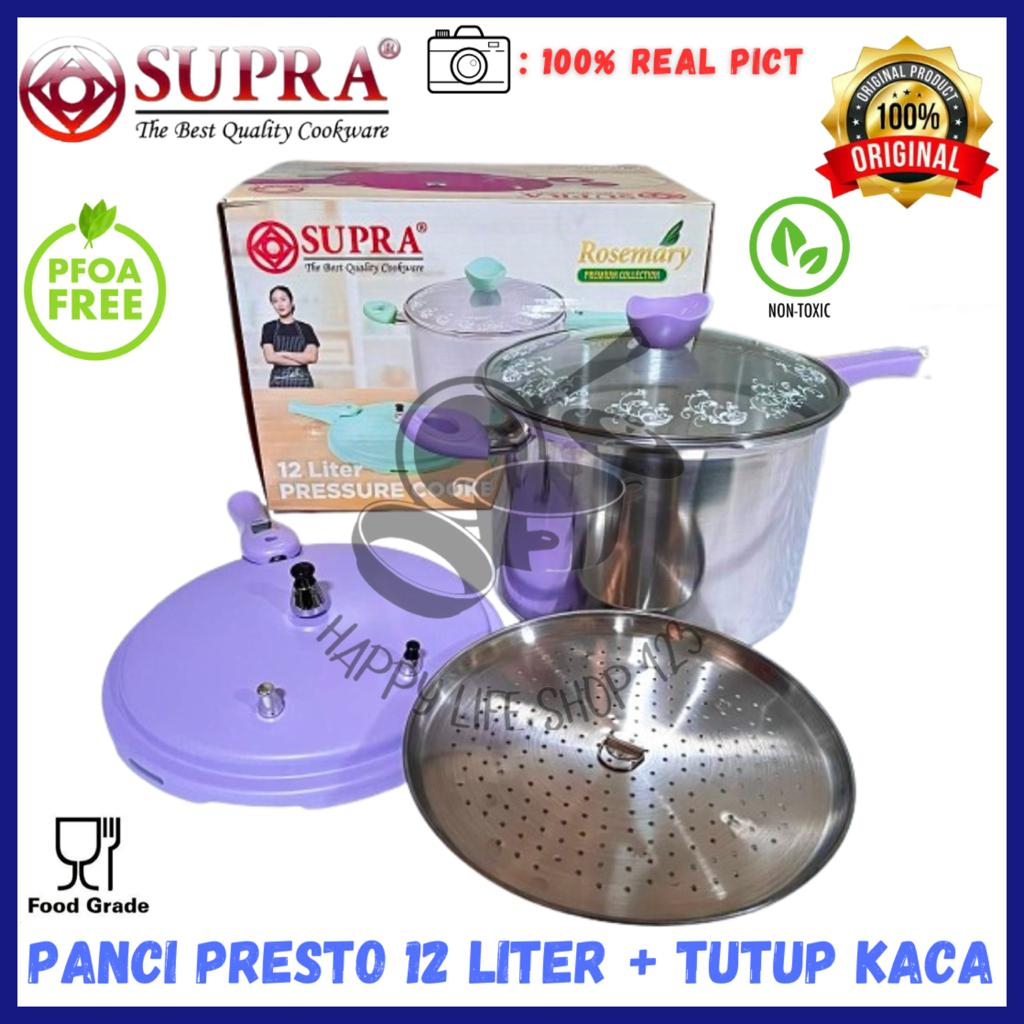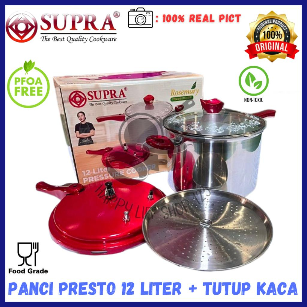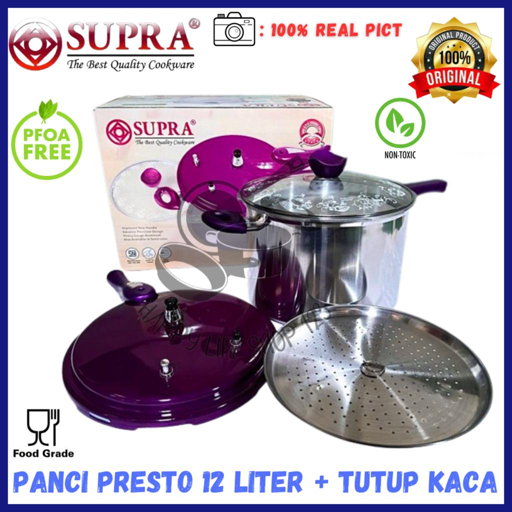 Panci Presto 12 Liter SUPRA/Panci Presto SUPRA 12 Liter + Tutup Kaca / Panci Presto Aluminium 28cm