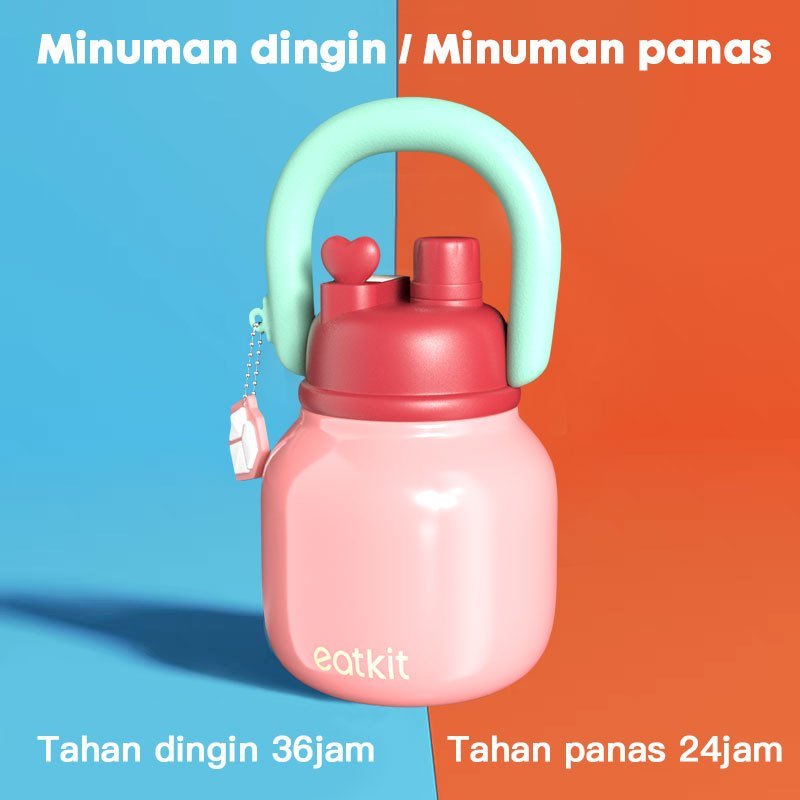 Eatkit Vacuum Thermos Stainless Steel 650ml Botol Minum Tahan Panas Tumbler Handle Linlin Tritan