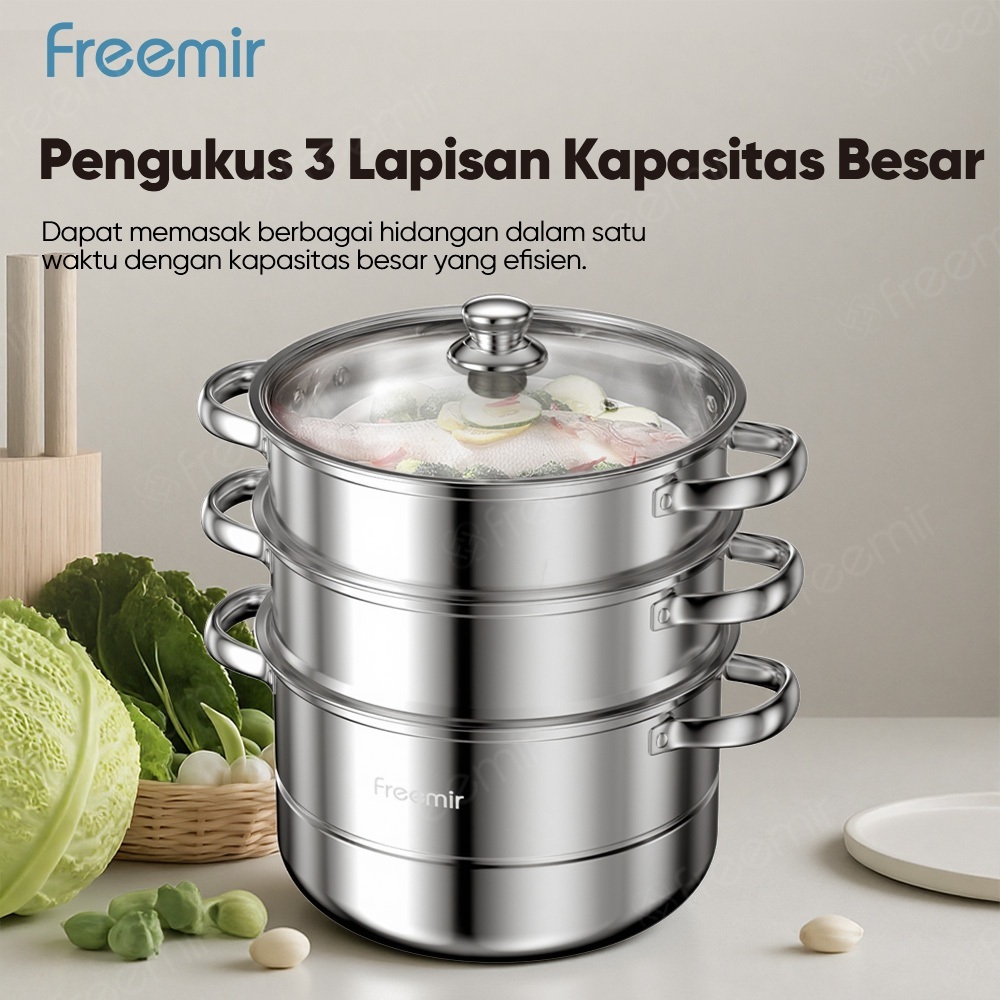 [OFFICIAL] freemir Panci Kukus Stainless Steel 3/2 Tingkat Panci Rebus Steamer Serbaguna Anti Karat