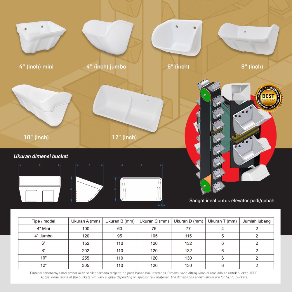 PAKET Bucket Elevator 6 inch / Cintungan 6 Inch 50pcs