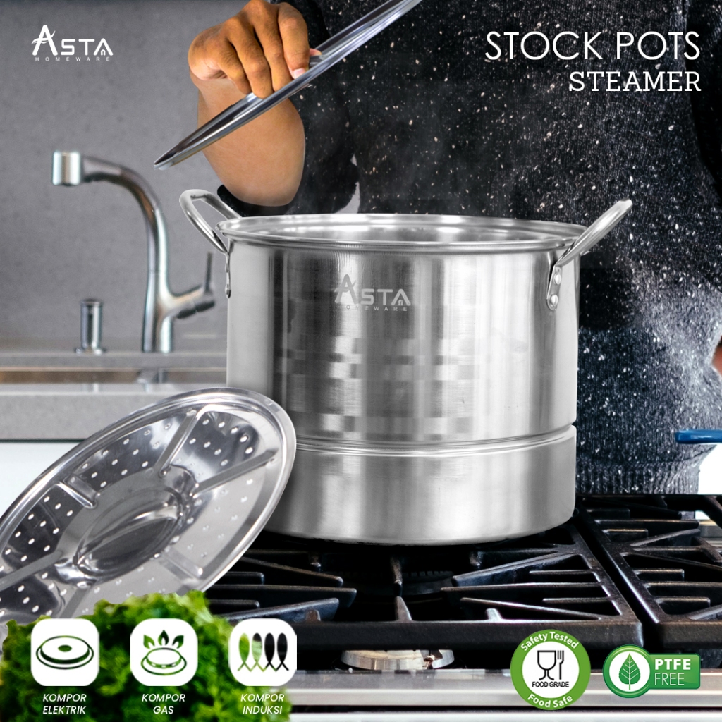 Asta Panci Dandang Kukus Stainless Steel Stock Pot Steamer Dandang Bakso Nasi Tebal