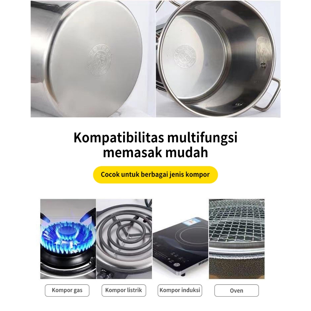 Panci Dandang Stainless Steel Stockpot Full Stainless SUS 304/12L 21L 34L 50L Panci Jumbo Tebal