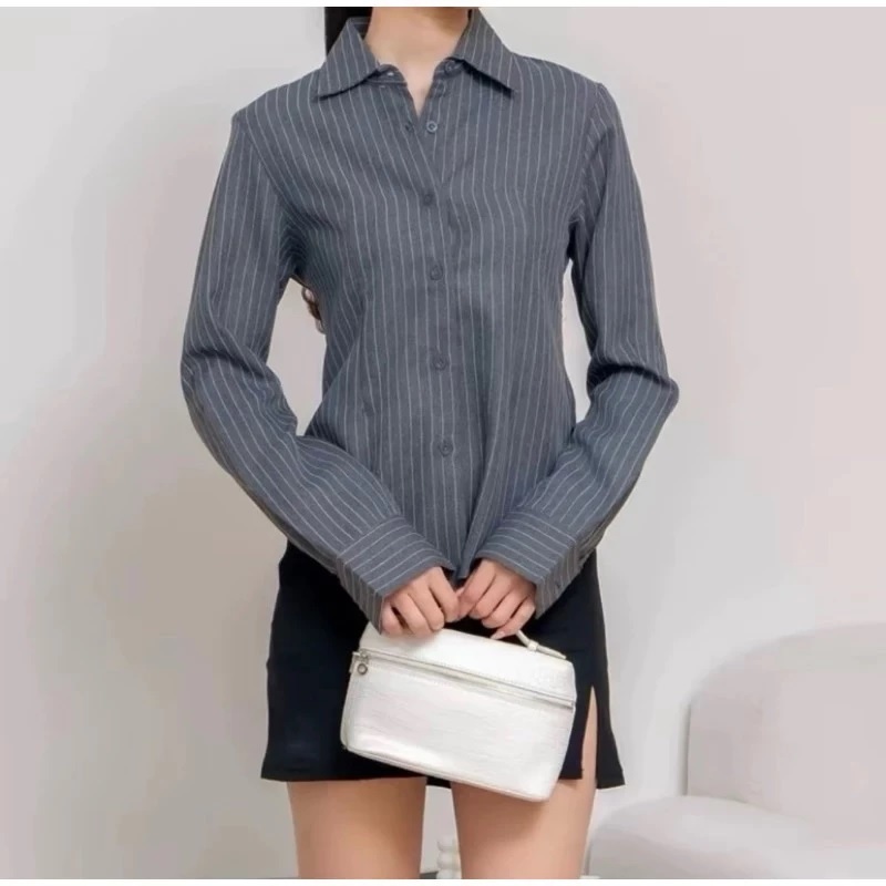 NETTO -Luna Stripe Long Sleeve - Kemeja Fitted Wanita - Atasan Lengan Panjang