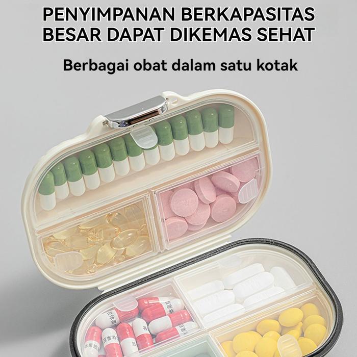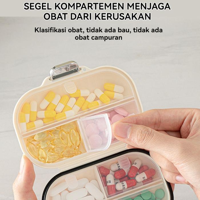 Kotak Tempat Obat Portable Pill Box Travel / Kotak Obat Mini Segel 7 Hari Sekat - Kotak obat persegi (warna krim)